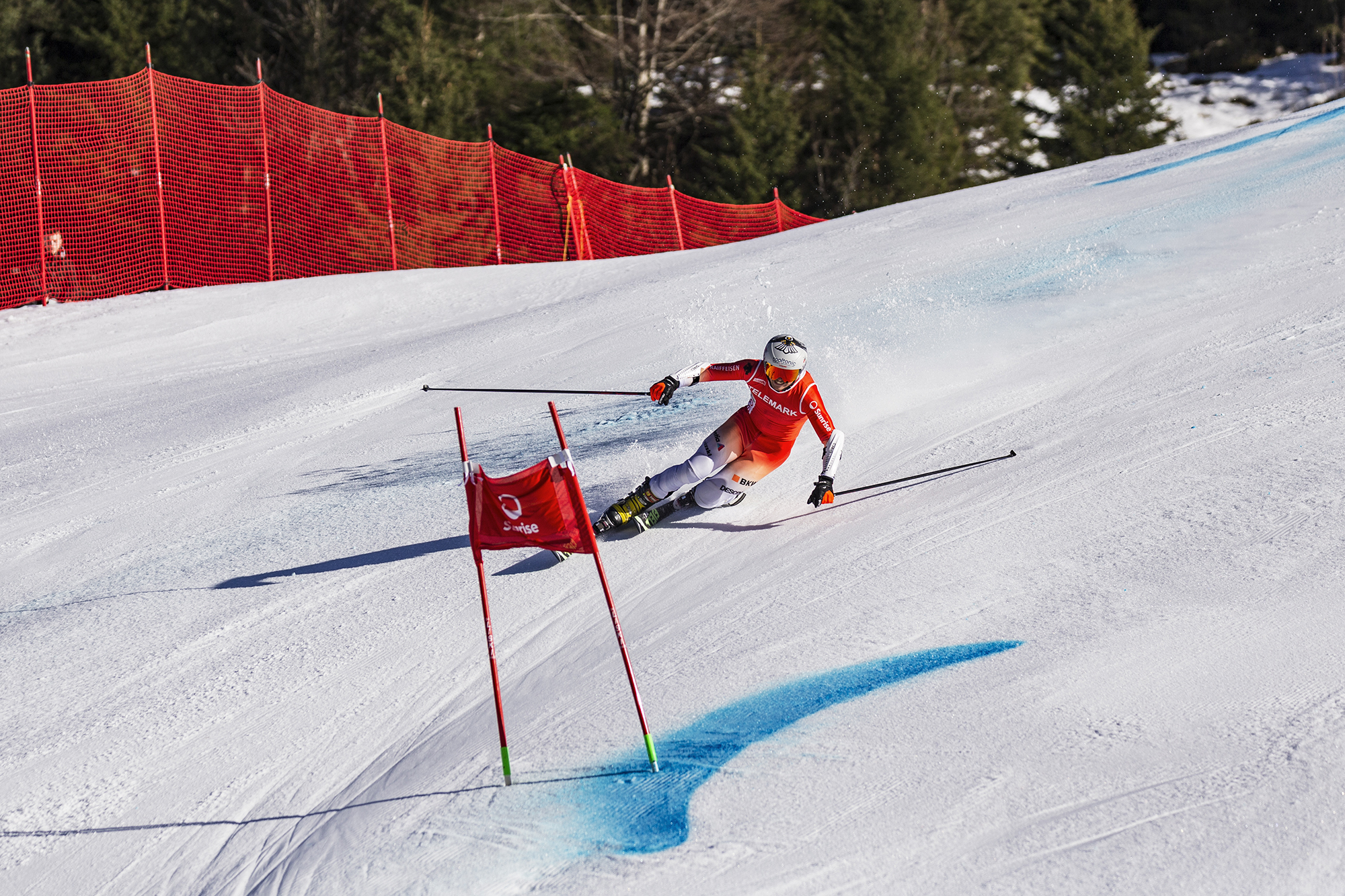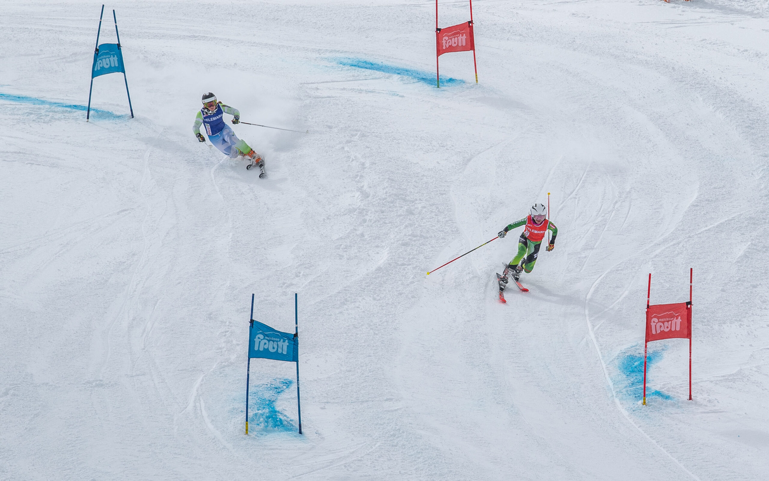 Ein:e Telemarkrennfahrer:in ist auf einer solchen Strecke zwischen zwei bis vier Minuten unterwegs. Dabei ist zu beachten, dass der:die Fahrer:in in den Toren immer im Telemarkschritt bleiben muss – ansonsten wird ihm:ihr von den Torrichtern eine Strafsekunde auferlegt.